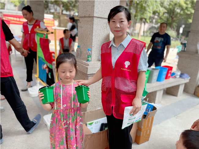 首先,黨員志愿者向社區(qū)的小朋友們介紹了垃圾四分類的標識及顏色,并通過生動直觀的講解讓大家認識到垃圾正確分類的重要性。志愿者們利用“分類垃圾桶”引導(dǎo)小朋友認識“可回收物”、“其他垃圾”、“有害垃圾”、“廚余垃圾”四種分類垃圾桶,志愿者還就日常家庭生活中產(chǎn)生的垃圾,細致地講解如何將其分類,倡導(dǎo)大家做好生活垃圾分類,實現(xiàn)資源再利用。